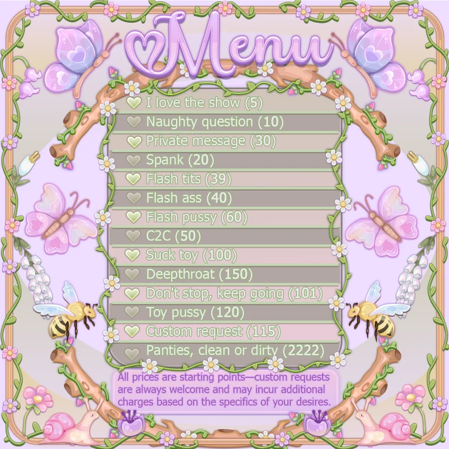 Blowjob, Cock Rating, Doggy Style, Dirty Talk, Double Penetration, Dildo or Vibrator, Fingering, Foot Fetish, Gape, Hardcore, Jerk-off Instruction, Orgasm, Sex Toys, Role Play, Deepthroat, Anal, Cuckold, Gagging, Humiliation, Squirt, Spanking, Masturbation, Heels, Anal Toys, Footjob